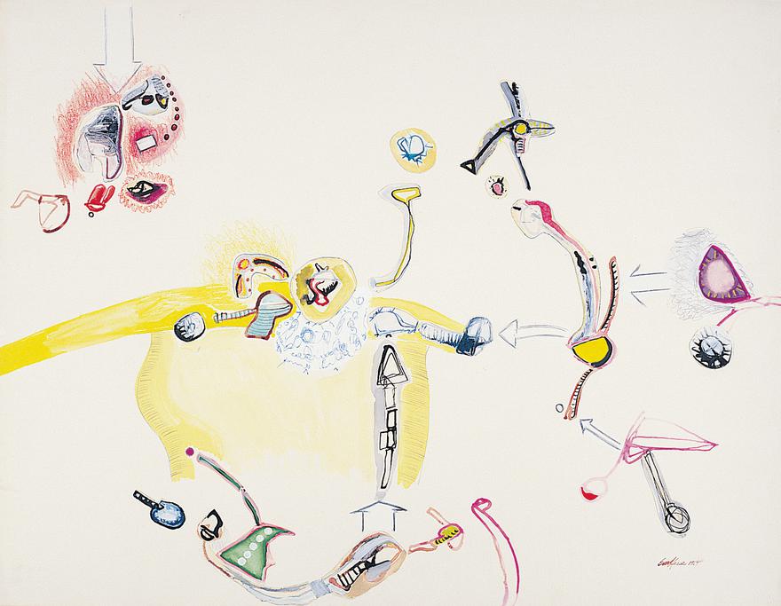 Another important element of the collection is the set of 300 prints and books by Surrealist artists, also donated by Charles and Evelyn Kramer, which highlight the close collaboration between painters, writers, and poets of that movement. Also notable are the donations by Ms. Peggy Guggenheim of works by various Surrealist artists and their successors, and a wide variety of works on paper by European artists from the years 1954–75 from the Vera and Arturo Schwartz Collection, both of which greatly enhanced the Museum’s collection. Also of note is the collection of works on paper donated by the Riklis Collection of McRory Corporation, which represents a wide range of geometric abstract trends.