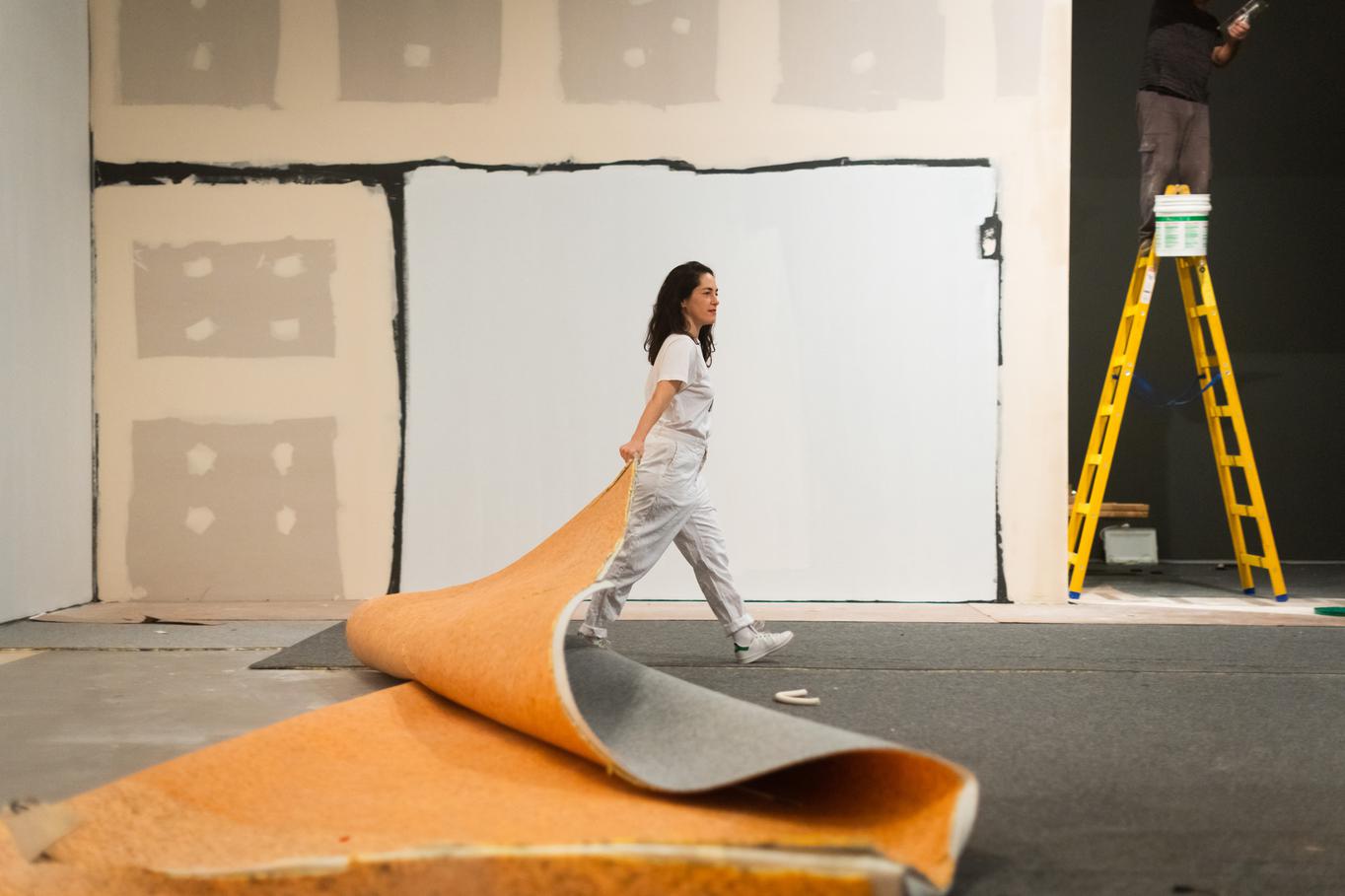Dana Ruttenberg assumes the role of a disobedient memorybearer (librarian/archivist). In fact, she is a medium, a psychic. While leading the audience on a tour of the empty Gallery, she communicates a stream of consciousness gathered from the voices of various speakers, through which she invokes past exhibitions held in the Gallery since the day it opened. In order to attain the necessary spiritual communication, over the months preceding the exhibition Ruttenberg interviewed curators, artists, guides, maintenance and conservation workers from the Museum staff, people who have all seen the Gallery in its festive moments as well as its chaotic times, and were closely involved in its exhibitions: they installed them, lit them, loved them and dismantled them. Memories and stories, personal and human, arise from these conversations about art. They accumulate into an unwritten history that does not make its way into catalogs and exposes an unseen dimension of the museum space.