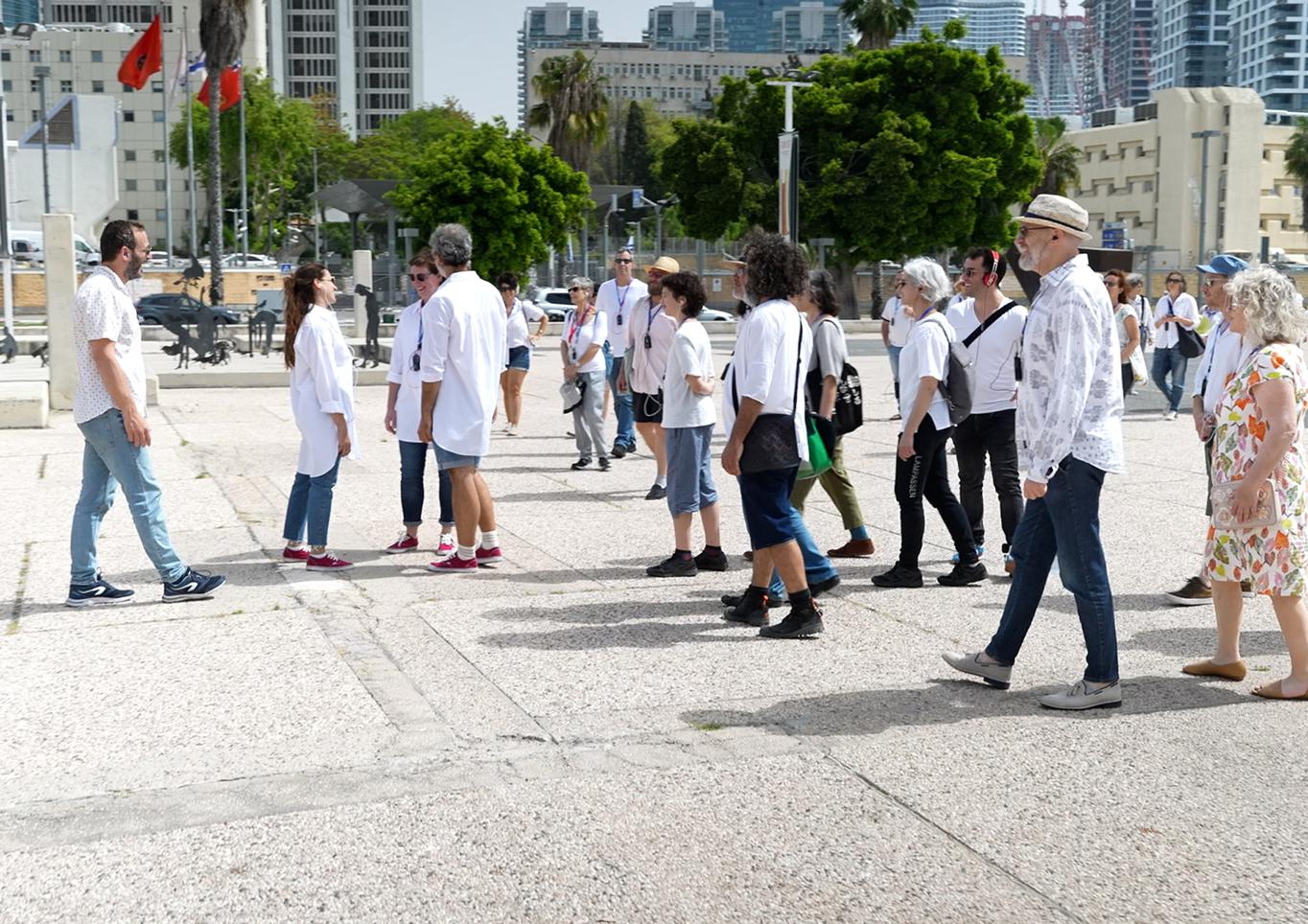 The Center Out There is an urban walking event with earphones. It is named after the concept coined by British anthropologist Victor Turner, who researched rites of passage and pilgrimages; inspired by him, Mor Leedor turns the gaze to the Museum as a pilgrimage site, where the journey becomes a rite in itself. Three groups meet at three meeting points throughout the city, and are led to the Museum in pilgrimage style. As they walk, participants are given earphones in which they hear everything they might ever have wanted to know about pilgrimages in various cultures, in various eras, around the world. Later they all gather at the Museum piazza, and enter, and then...