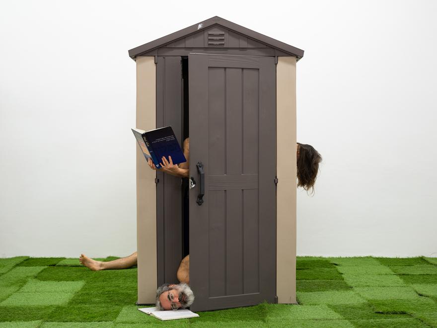 Featuring live art in a museum, over six weeks, crossbreeds opposing formats: the performative-stage format and the exhibition format; theater’s black box logic and the gallery’s white cube logic. The classic format of an “exhibition” shifts and alters but maintains the unsolved conflict between a living body and an object-focused exhibition space. The attempt to shake the matrix while remaining within it leads to a series of activities such as dancing, teaching, talking, playing music, listening, reminiscing, therapy or meditation. Together they accumulate into a rustle of happenings and motion.