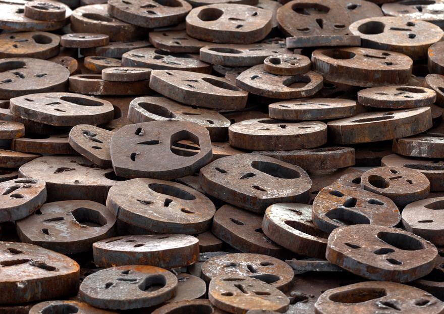 On the tenth anniversary of Menashe Kadishman's death, Tel Aviv Museum of Art is presenting Shalekhet (Fallen Leaves), a milestone in the history of local art. The sculptural installation comprises thousands of open-mouthed faces made of rusted Corten steel, the viewer's feet. The heads are flat, their eyes narrow, and the signs of rust and time dot their faces with what resembles bloodstains or tears.