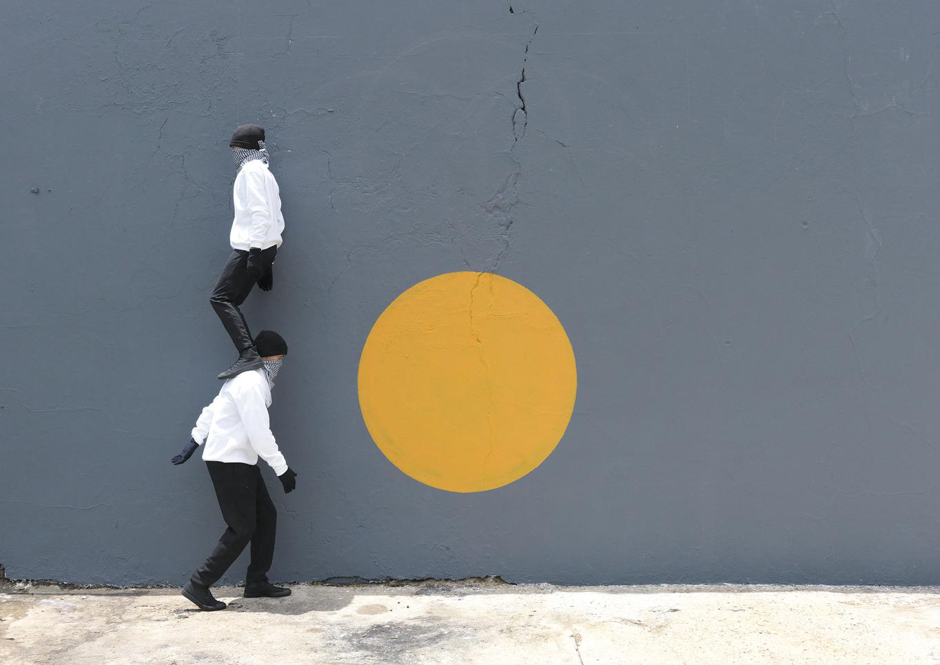 His works are often initiated as wall drawings that subsequently develop into performances, in which the artist, an actor, or sometimes both, respond to the represented image. Since these actions are ephemeral, and since the drawings are destined to be erased at one point or another due to their location in the public sphere, the final product is presented as a series of photographs or a video. The artistic object is thus the documentation of an event unfolding outside the art world; it is a vestige of an energetically charged, physical occurrence that persists long after the traces of movement, tension, and sweat dissolve and disappear. The power of the artistic objects created by Rhode - videos, photographs, or sculptures – thus paradoxically lies in their fundamental loss of power in comparison to what once existed outside, in the street, under a blazing sun. Rhode exploits the public sphere as a platform for exploring issues on the international agenda, as well as ones specifically related to life in South Africa. Rooted in urban youth culture, his works touch upon questions of culture, identity, and history, and are characterized by a hip-hop rhythm and by the power of graffiti paintings.