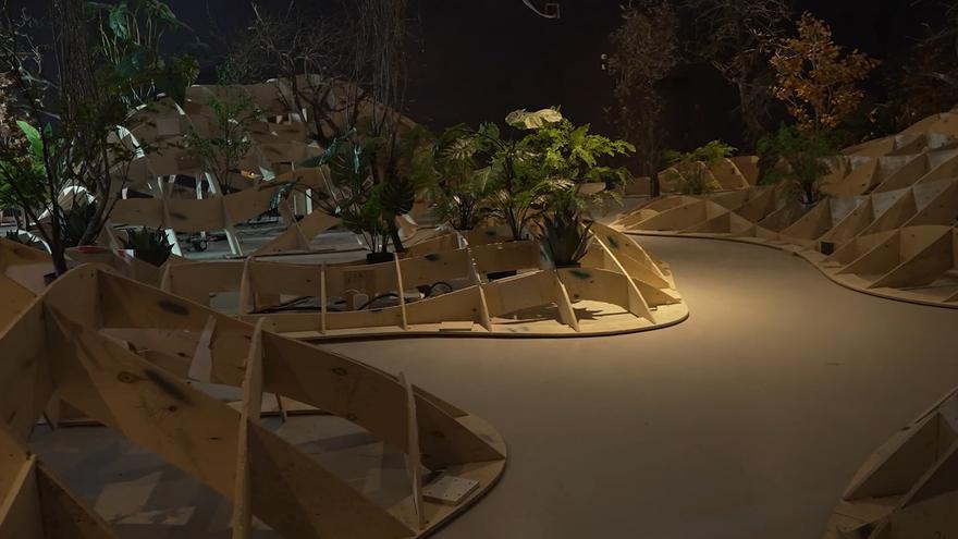 The environment looks familiar but raises doubts as to how natural it is and about the meaning of a garden. The installation was designed with environmentally conscious care in the selection of materials, method of construction and disassembly. All the elements are intended for reuse.