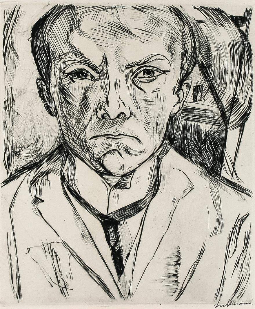 מקס בקמן, דיוקן עצמי עם גג של בית ברקע, 1918