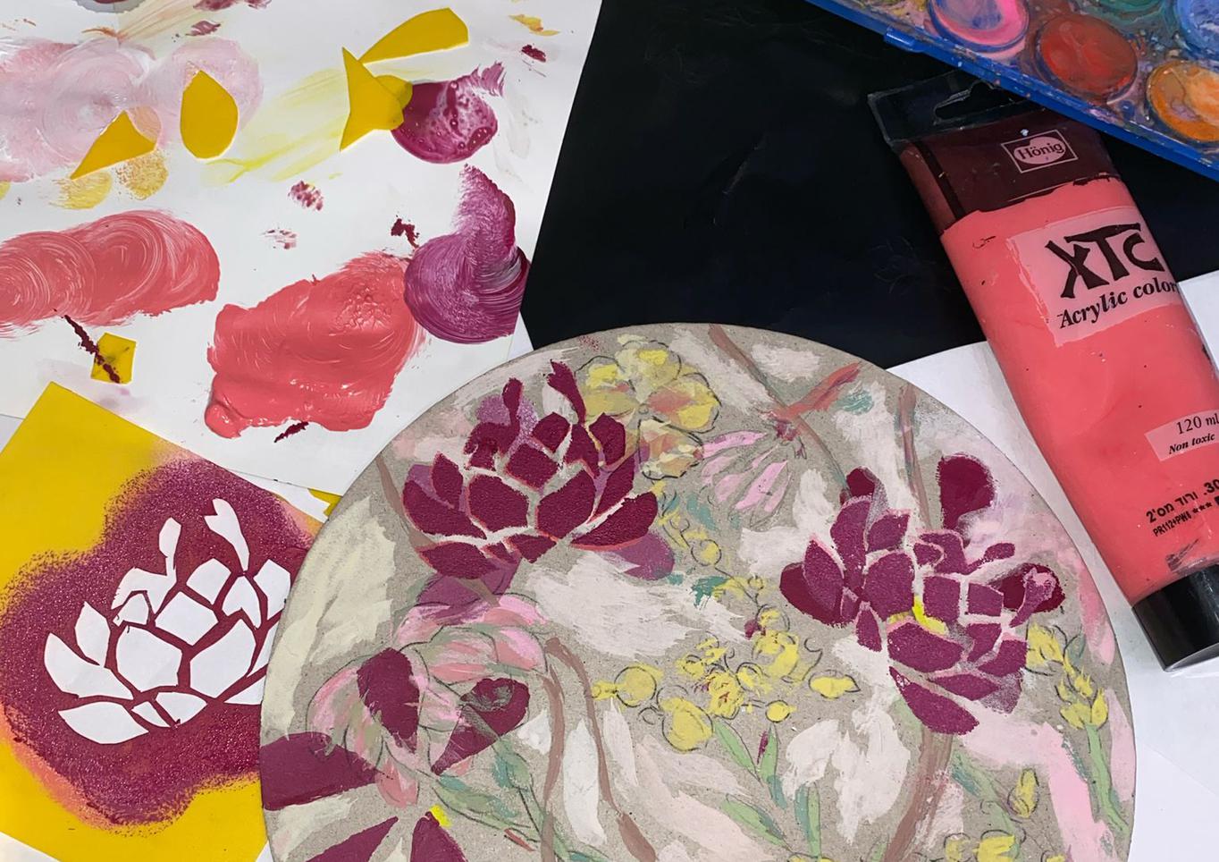 בסדנה נרכיב קולאז' עגול בהשראת הטבע – יצירה אחת המתפתחת שלב אחר שלב. נבחר דימויים של פרחים, עלים וצמחים מתוך הדפסים, שבלונות ודפי השראה ונרכיב מהם קומפוזיציה יצירתית על גבי נייר. נעתיק ונצבע בעפרונות צבע ובצבעי מים וניצור יצירה ייחודית המשלבת בין דמיון, טבע וצבע.