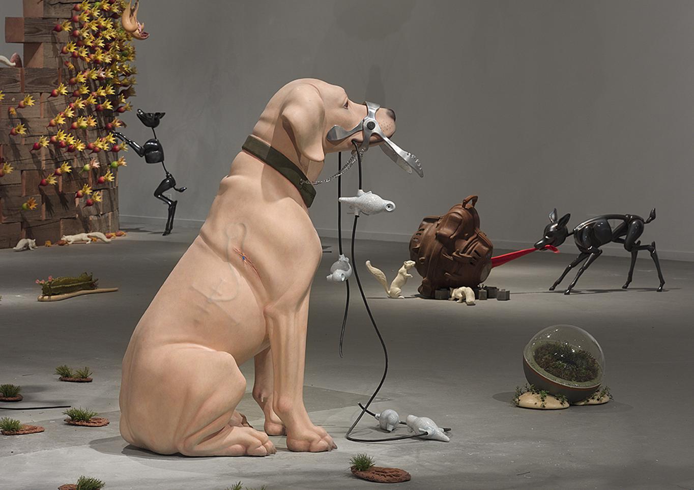Eli Gur Arie’s exhibition relates to the possibility of an apocalyptic event and its ecological and biological consequences. Gur Arie builds survival surroundings with bio-mechanic elements to sustain the catastrophe’s surviving hybrid creatures. He employs the aesthetic of a consumer society, similar to that of the advertising industry, both obsessed with the superficial, in order to formulate a critique of contemporary society.