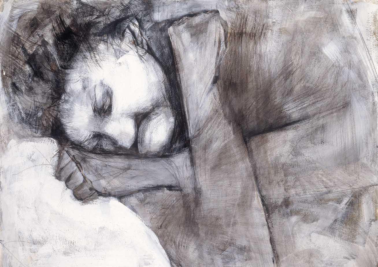 The exhibition Protests on the Horizon, whose title is extracted from Nathan Alterman's poem A Protest's Fortune, focuses on paintings created by Schloss in the last two decades of her life. It marks a peak in her ongoing engagement with the human existence of the helpless. These paintings are juxtaposed with early drawings, which preceded the later manifestations of human suffering in both content and form. The later paintings reveal a new painterly sensitivity in the introduction of monumental figures: old men and women, newborn babies, and handcuffed Palestinians. Depicted from up close, the figures are "chained to life," fighting for their freedom from their first to their last day. Through the winding movement of the handcuffed bodies, Schloss ties the political body's protest against wrongs and injustice with the eternal struggle of the surviving body.