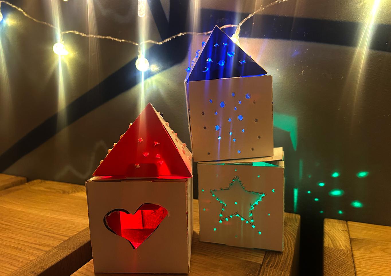On this unique, illuminating workshop for the whole family, we will discover how to turn light and paper into an art work! We will fold houses out of paper and create spectacular patterns in them by gently punching holes. The light that shines through the openings will illuminate our creation in a new and exciting light.