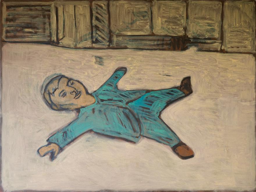Ben-David paints in oil on canvas, creating detailed, saturated alliterations. The chiaroscuro painting, in its tachist and linear manifestations, gradually structures the memory etched in the mind. The use of photography is a conceptual choice bound up with the exhibition's point of departure, relating to moments in which there was no photographic involvement. Thus, the photographs in the exhibition, embedded in the fabric of remembrance, are not a "reliable" document perpetuating a place or a figure from the past, but rather a "trigger" for the viewer's memory bank, which is rooted in space and time. The text works are another medium of reconstruction accompanying the viewing process, which sheds light on the work's contexts. the return of the seasoned artist to echoes of his past and origins brings to mind the literary theme of nostos (return, homecoming)—a physical and spiritual return unfolding in the exhibition as an inquiry into the nature of art, exploring how a person becomes the artist he is.