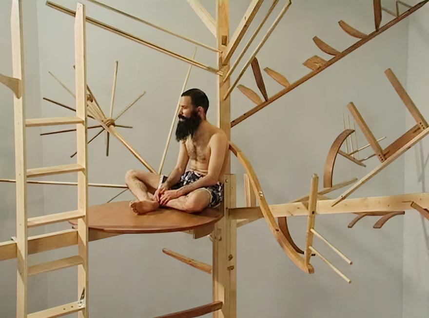 Ben Ner gained worldwide recognition with works that interweave his personal life with timeless myths and with seminal literary and cinematic works. His early films engage with the tension between his practice as an artist and fatherhood and family life. They are rooted in the domestic, everyday environment, while relying on familiar cinematic genres: silent cinema, sitcoms, nature films, instructional films and more. In contrast to the highbudget film and television industries, Ben Ner deliberately creates his films with what is most readily available to him: his family members, his home, public spaces, and of course himself. In a spirit of improvisation and inventiveness, he presents a model for inexpensive cinema — and economic independence also becomes part of the message. Many of Ben Ner's works present artistic “guerrilla acts,” such as filming without a permit, using public areas, stealing soundtracks, and vandalizing property. Navigating between private and public spaces, he emphasizes the decisive influence that society, the economy, and politics have on the most intimate relationships —marital and family ties.