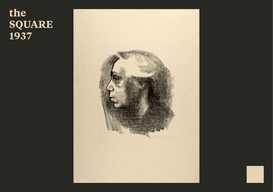 Kollwitz repeatedly created her tormented self-portrait, in drawings, sculptures, and various types of print, each re-embodying the personal tragedy she experienced and the general suffering she was aware of. Five of these self-portraits are in the Museum’s collection. The lithograph displayed here conveys not only the despair and suffering of 1919, but also heralds the tragedy of the future World War II, as it was donated to the Museum in 1937 by Berlin collector Max Matheus, along with about sixty other works by various artists, including Max Liebermann, Lovis Corinth, and Oskar Kokoschka. Matheus and his wife perished in the Holocaust, and works from his collection were confiscated by the Nazis. Some of them apparently ended up in the collection of Hildebrand Gurlitt, who traded in Jewish art during the war. Käthe Kollwitz’s tormented profile encapsulates all these injustices.