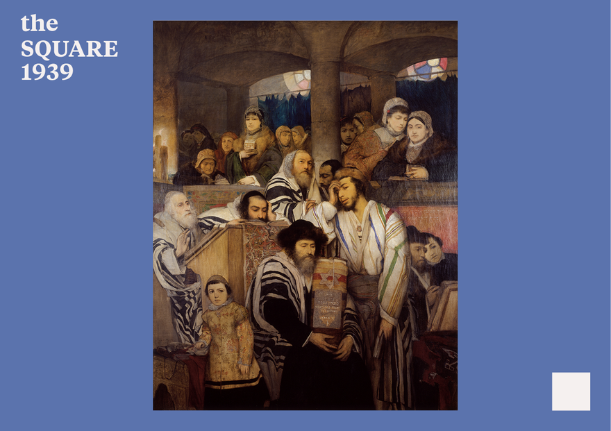 Karl Schwartz, the first director of the Museum, first saw the painting in a gallery in Berlin around 1913. Twenty-five years later, in 1938, he was thrilled to see it again at a private residence in Amsterdam. He was in the midst of a journey across Europe, visiting Jewish collectors in an attempt to persuade them to donate their collections to the Museum, not always successfully, but the case of Jews Praying in the Synagogue on Yom Kippur was one of his great successes. Sidney Lamon, the painting’s owner, a Zionist and a friend of Chaim Weizmann, was persuaded that it would be best for the work to be kept at the new museum in Tel Aviv. Accordingly, in July 1939 the painting arrived in Tel Aviv, and was ceremoniously hung on the first floor of the Museum. In many ways, it symbolizes the first stage in the history of the Museum: an academic painting, by a Jewish painter, about Jewish life in the Diaspora. In the ensuing phase of the Museum’s evolution, which focused on contemporary — particularly Israeli — art, Gottlieb’s painting represented for most local artists what they wanted to repress and get away from. How relevant has the painting been to generations of artists who have seen it on the Museum walls since 1939? Is the Jewish chapter of nineteenth-century art part of the story of art in Israel? Today, with the benefit of hindsight, long after the stormy conflict between Israeli and Jewish art, it behooves us first and foremost to admire the qualities of this monumental painting — and perhaps to consider its retrospective adoption as a venerable ancestor.