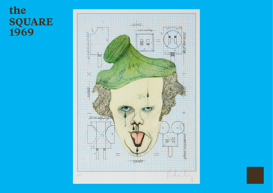 When Warhol enlarged the Festival entry ticket several times over, he also winks at, or pays homage to his contemporary, Claes Oldenburg (the Square 1969), whose sculptures were large-scale enlargements of everyday objects. Warhol chose a film festival ticket — a small piece of paper with a monetary status that belongs wholly to the world of consumerism yet also promises entry to the world of culture, to cinema’s fantasy. In many ways, this is the epitome of Warhol’s work: a tradable product transformed into art. The work accessed the Museum collection in 2012, many years after Warhol’s death and after he himself had become a cultural icon.