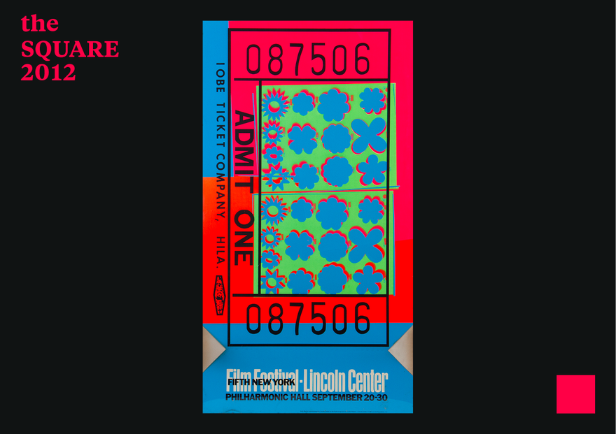Towards its fifth anniversary, the Lincoln Center Film Festival commissioned a work from Andy Warhol. It was 1967 and Warhol was a beginner artist. He took a festival ticket and transformed it into a poster-size, colorful silkscreen in 500 copies. Brightly colored, with replicated flower images against a background of standard details such as the date (20—30 September) and a serial number, the work offers a perfect example of the Pop language that Warhol developed in the early 1960s. Evidently discernible in the work, in addition to its visual language, are Warhol’s love of cinema, his fascination with Hollywood and the films he was making at the time. This was one of his first silkscreens; it was produced and funded through the Vera List Art Project, aimed at supporting artists and raising funds for the Lincoln Center, in which many artists participated over the years.