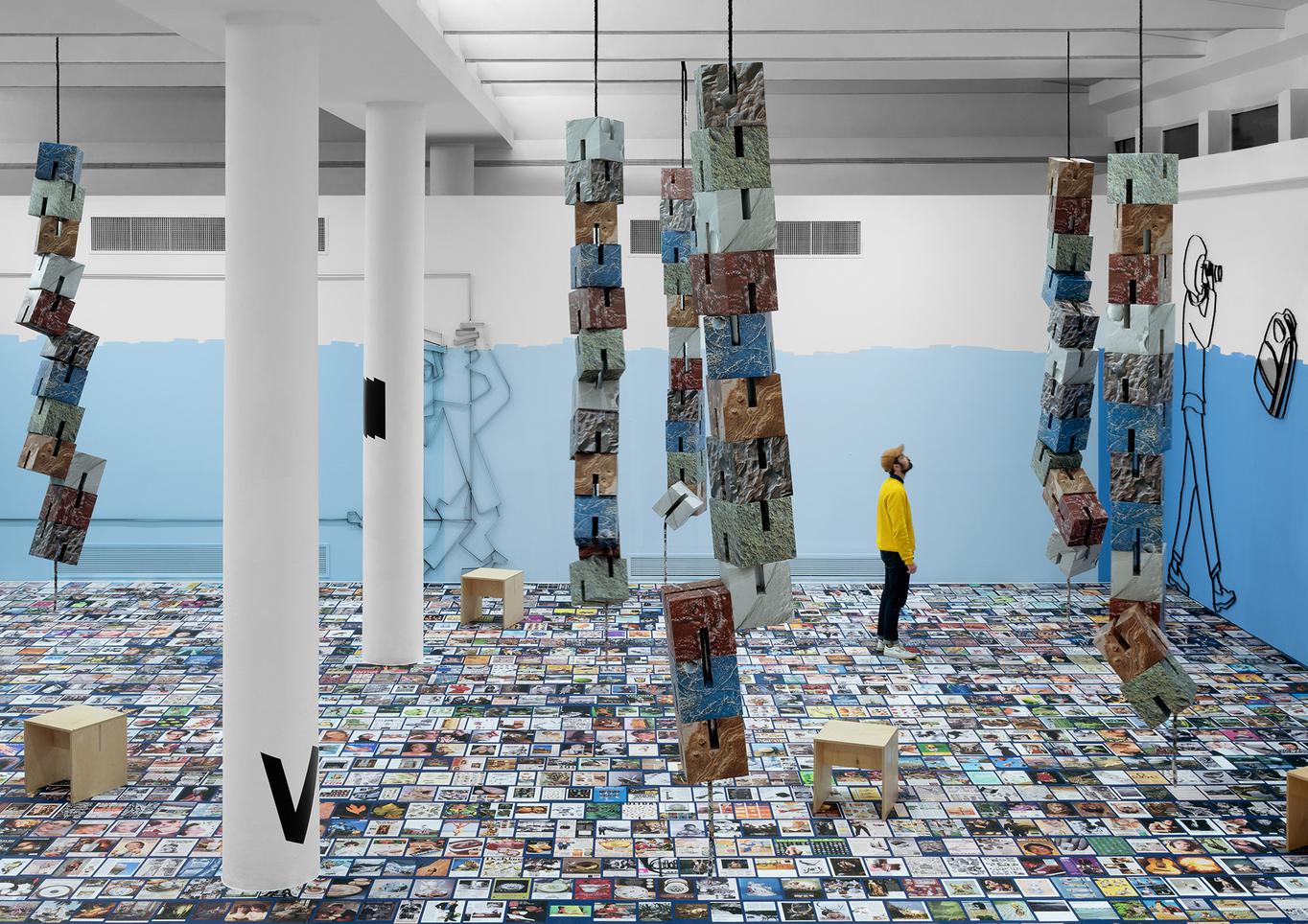 The installation The Cosmos spreads over the Pavilion’s three floors, offering a model of an exhibition. Its 16 elements are designed at a 1:1 ratio but their very existence as concept and matter is a model.