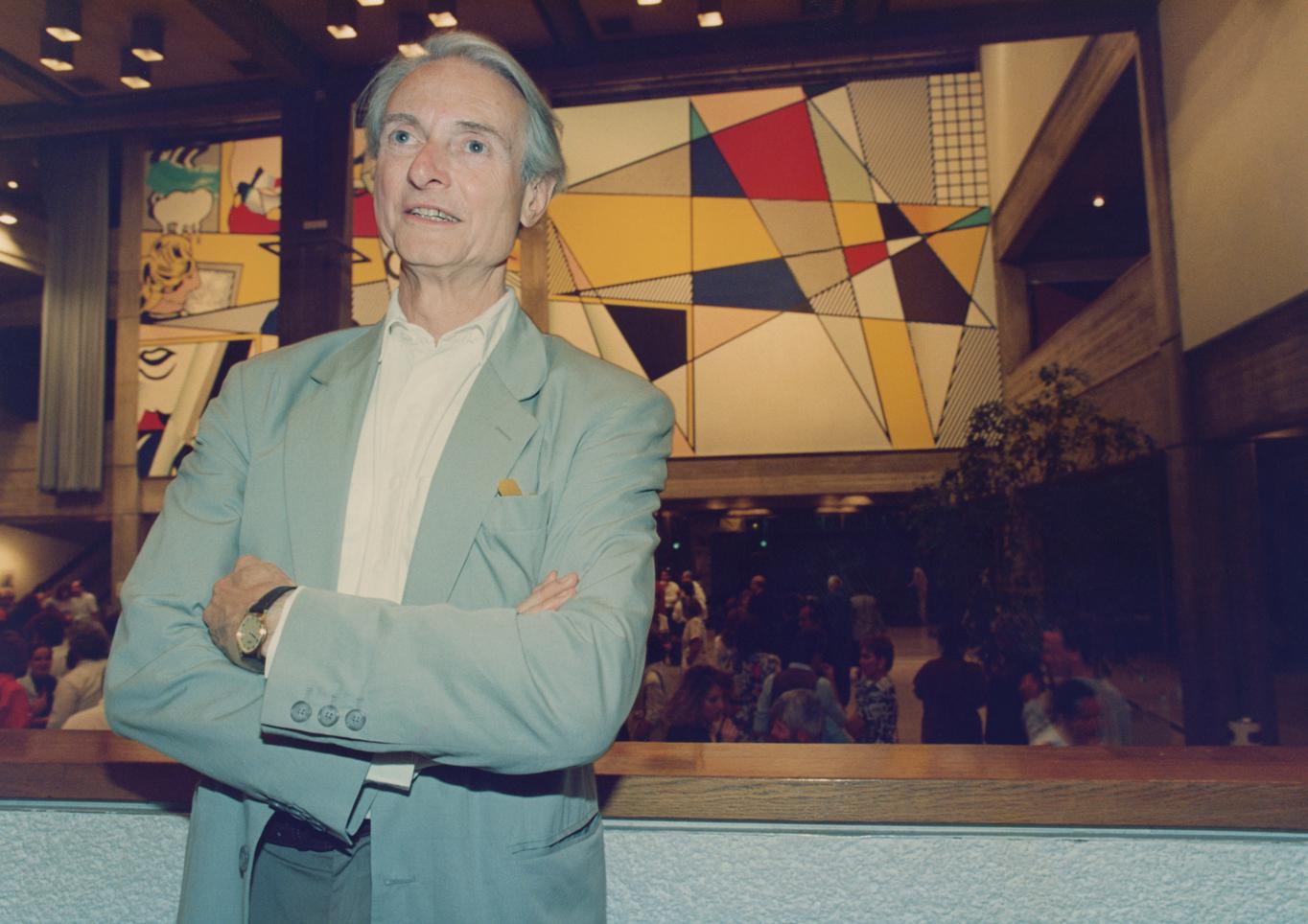 דימוי: רוי ליכטנשטיין על רקע עבודתו מוזיאון תל אביב, ציור קיר, 1989 (צילום: סוכנות י.פ.פ.א בע"מ)