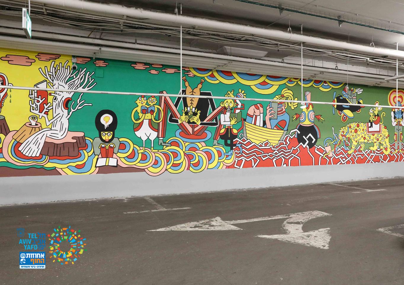 שבעה מאיירים ישראלים — אלעד אליקים, עובדיה בנישו, ענת ורשבסקי, עמית טריינין, דוד פולונסקי, בתיה קולטון וניב תשבי –הוזמנו לצאת מדפי הספר ולצייר על קירות החניון.
