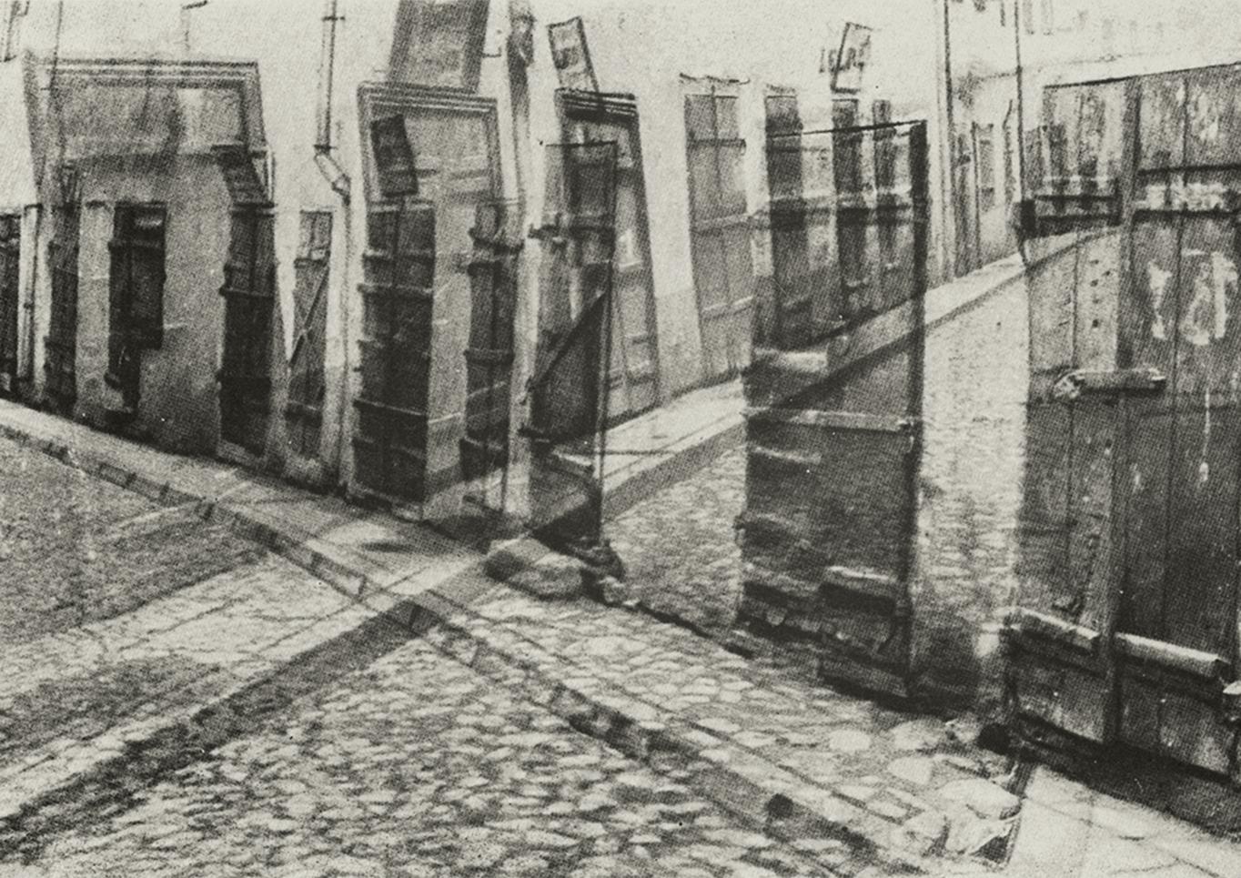 דימוי: משה וורוביצ'יק (מוֹי וֶר), חנויות, 1928 - 1929, פורסם בספר רחוב היהודים בוילנה (1931), פוטומונטאז'