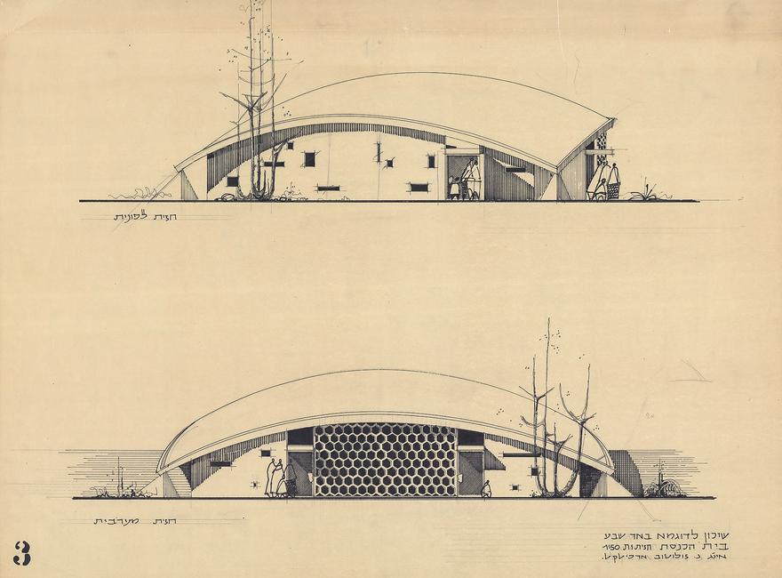 בית הכנסת הבין־עדתי, שכונה ה', באר־שבע, 1957-1958: תרשימי חזיתות צפונית ומערבית