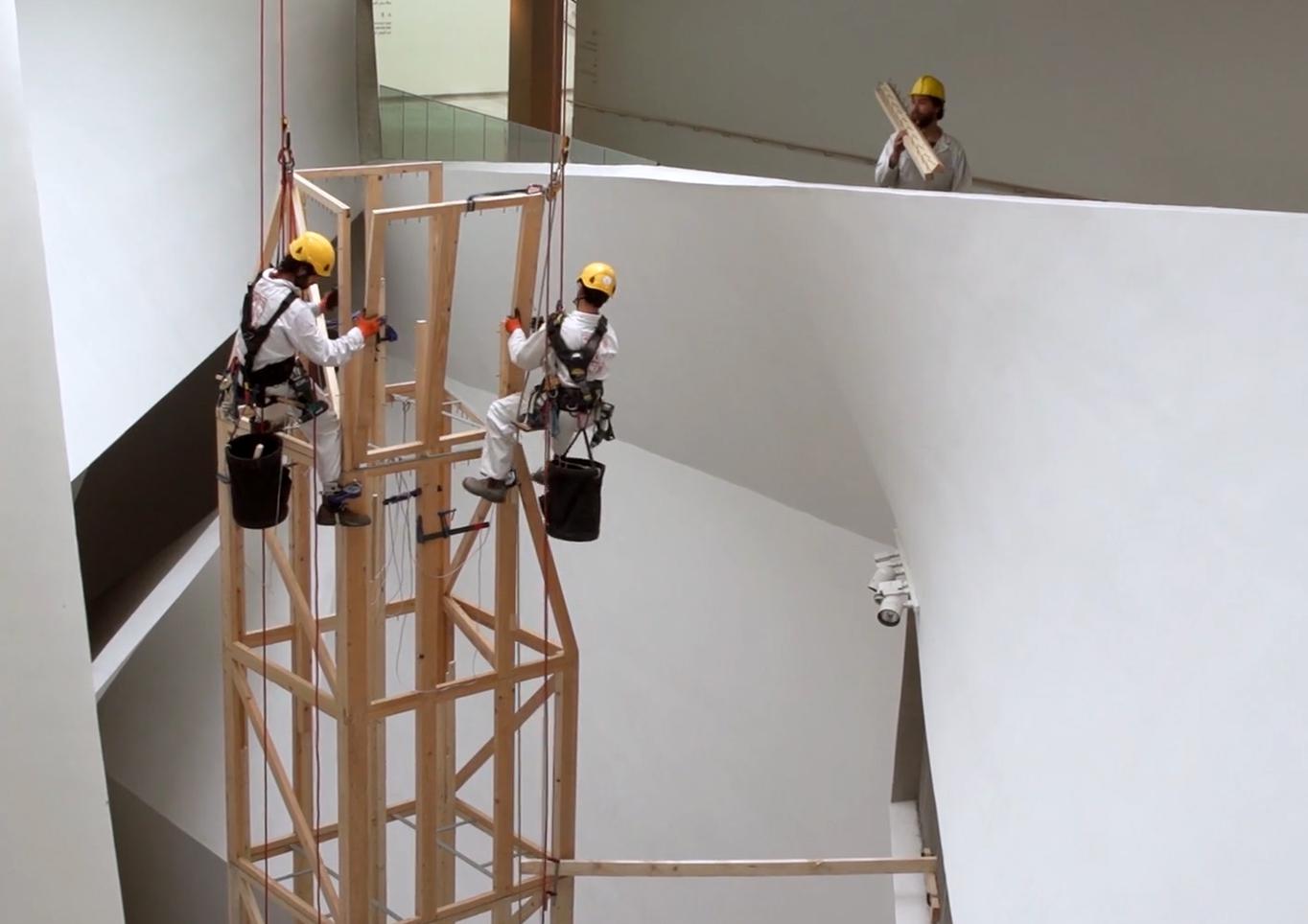 עבודותיה של קבוצת זיק, קבוצת האמנים הוותיקה ביותר בארץ הפועלת מאז שנות השמונים, נעות בין מיצבי ענק, מיצגים בוערים, מחול ותנועה, פיסול וציור, מוזיקה וסאונד. "מסגד הביטחון" הוא מגדל של 25 מטרים שעוצב והורכב במיוחד למפל האור של מוזיאון תל אביב לאמנות ומייצג את השינוי הדרמטי — הן האדריכלי–פיזי והן הדמוגרפי והביטחוני — שחל בתל אביב, עיר של מגדלי הקריה השומרים/מאיימים, לצד בנייני המשרדים הרמים וצריחי המסגדים.